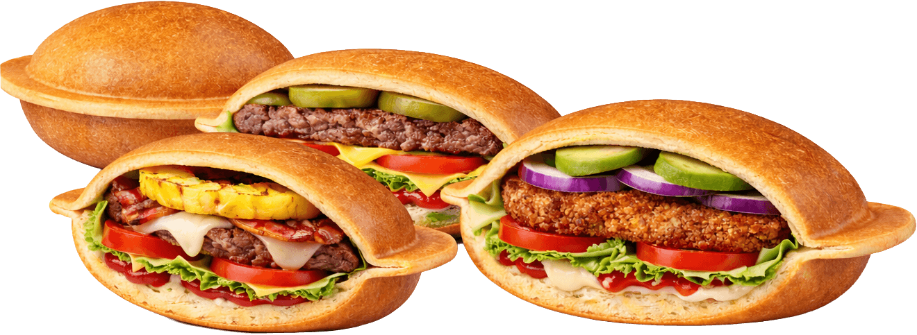 eine spektakuläre Burgerkreation in ikonischer Form, die nicht nur Aufmerksamkeit erzeugt, sondern auch funktional überzeugt. Durch seine innovative Bauweise bleibt der Inhalt sicher im Inneren – Saucen, Beläge und Saft dort, wo sie hingehören. Kein Tropfen, kein Chaos, kein Kompromiss beim Genuss.